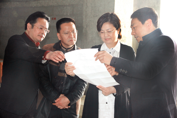 在二期项目门诊现场,任建兵书记拿出一幅文化浮雕背景设计图,向陈冬梅主任介绍其设计构想。他说,这张浮雕图反映了色情主播